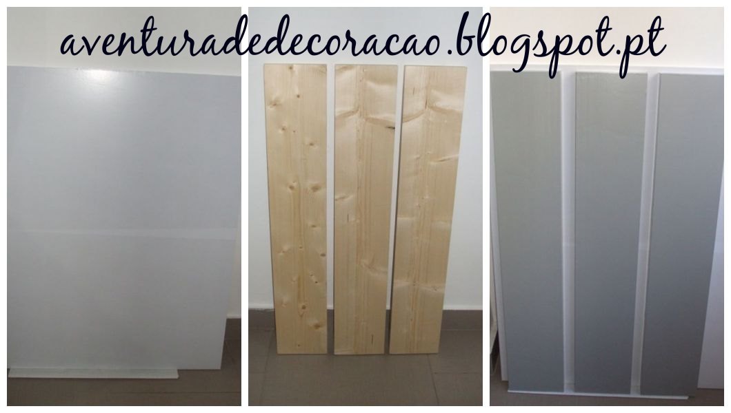 Para fazer as prateleiras comprei madeira em bruto, vende-se em barras grandes, que mandei cortar em 3 peças, que foram depois forradas com papel autocolante cinza prateado.