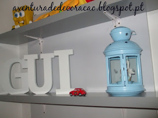 A lanterna azul comprei no IKEA (reparem na cegonha que está lá dentro), e o carrinho vermelho pertence ao papá babado já à vários anos.